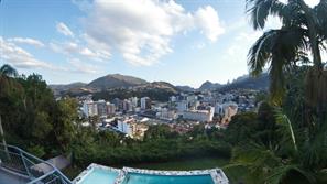 Possui vista ampla da piscina, cidade e Serra dos Órgãos.
